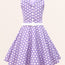 This beautiful sleeveless vintage polka dot inspired dress is available for young ladies! The dress features a collared neckline with a buttoned front and a full circle flared skirt. The dress has a side zipper and white PU waist belt. In addition, the inside of this garment is fully lined giving you that extra comfort without compromising the look.