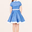 This lovely kids dress features a black collared neckline and skirt hemline. There are two decorative buttons on the front accompanied by a full circle flared skirt. The dress has a back centre zipper and black PU waist belt. In addition, the inside of this garment is fully lined giving you that extra comfort without compromising the look.