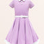 This lovely kids dress features a black collared neckline and skirt hemline. There are two decorative buttons on the front accompanied by a full circle flared skirt. The dress has a back centre zipper and black PU waist belt. In addition, the inside of this garment is fully lined giving you that extra comfort without compromising the look.
