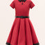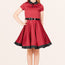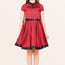 This lovely kids dress features a black collared neckline and skirt hemline. There are two decorative buttons on the front accompanied by a full circle flared skirt. The dress has a back centre zipper and black PU waist belt. In addition, the inside of this garment is fully lined giving you that extra comfort without compromising the look.