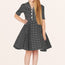 This beautiful vintage polka dot inspired dress is now available for young ladies! The dress features a collared neckline with a buttoned front and a full circle flared skirt. The dress has a side zipper and short turned sleeves for an authentic 1950's vintage look. In addition, the inside of this garment is fully lined giving you that extra comfort without compromising the look.